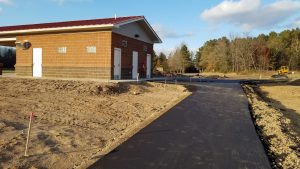 The new multipurpose building is completed, and the facility is available for use. The West Pavilion (to be used on a reservation/fee basis) is situated off the Community Kitchen (also to be reserved on a reservation/fee basis) on the west end of the building. Picnic tables, including an accessible picnic table for wheelchair bound individuals.
