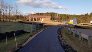 Trail upgrades including Eagle Trail, Eagle Pass, and Red Tail Path are nearly completed. The trails have been widened and a gravel base added for improved use and sustainability. The public is invited to enjoy the new building facility and other significant improvements to Glover Park!